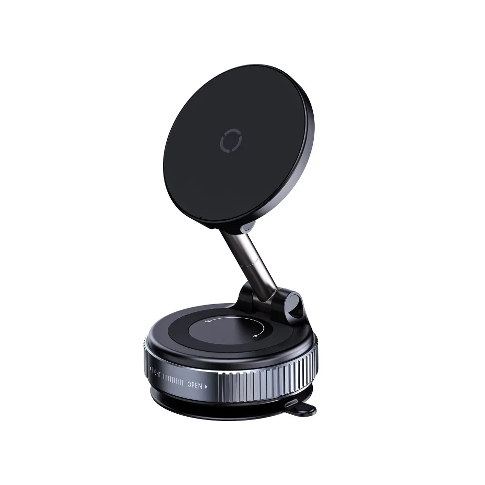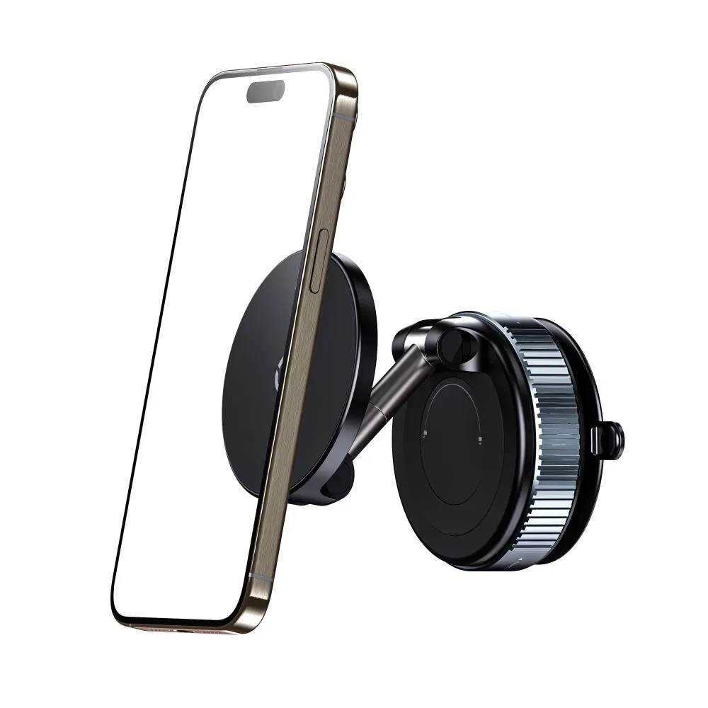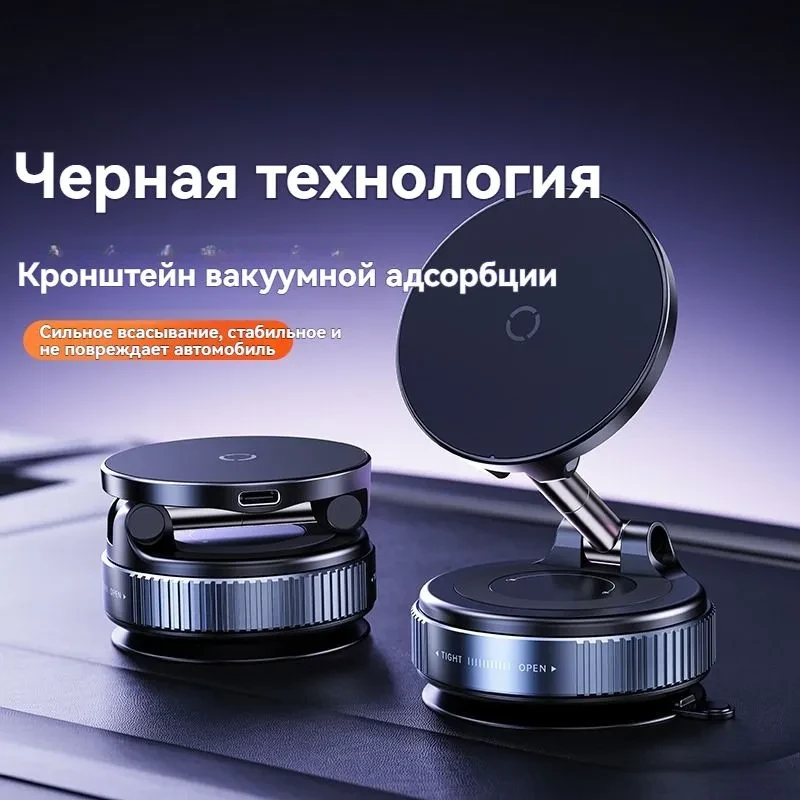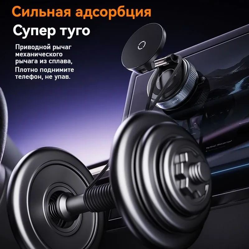 Этот держатель для телефона изготовлен из высокопрочного алюминиевого сплава и полностью чёрного цвета. Контактная поверхность телефона имеет двухслойную конструкцию с сильным магнитом, обеспечивающую надёжное крепление и предотвращающую соскальзывание во время использования. Для контакта с автомобильными окнами, приборными панелями или другими гладкими поверхностями используется метод электрической вакуумной адсорбции. Достаточно лёгкого нажатия, чтобы он автоматически закрепился; присасывание сильное, не оставляет следов, прост и надёжен в использовании. Если уровень вакуума на контактной поверхности недостаточен, держатель автоматически определит это и выпустит воздух, чтобы усилить присасывание и обеспечить надёжную работу.