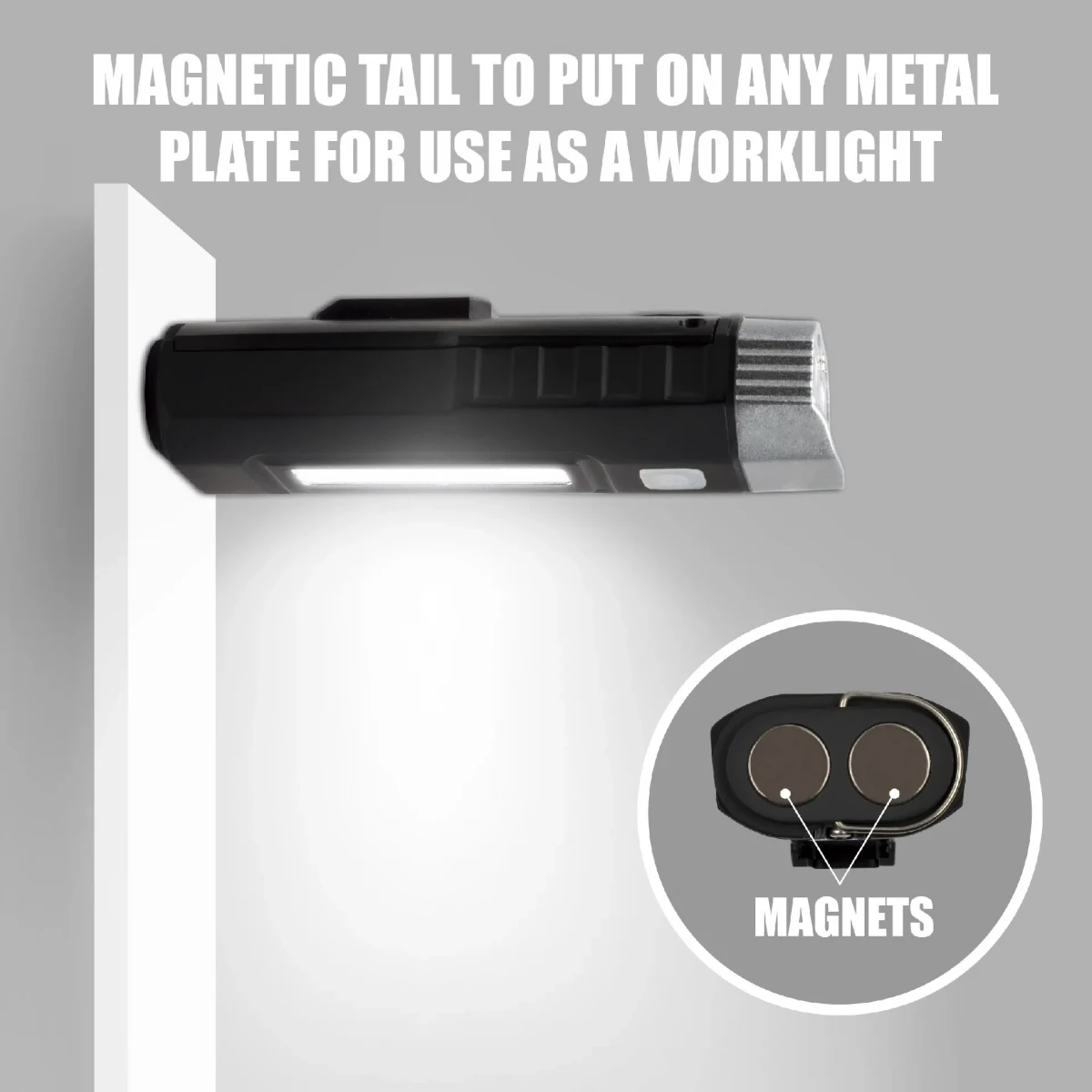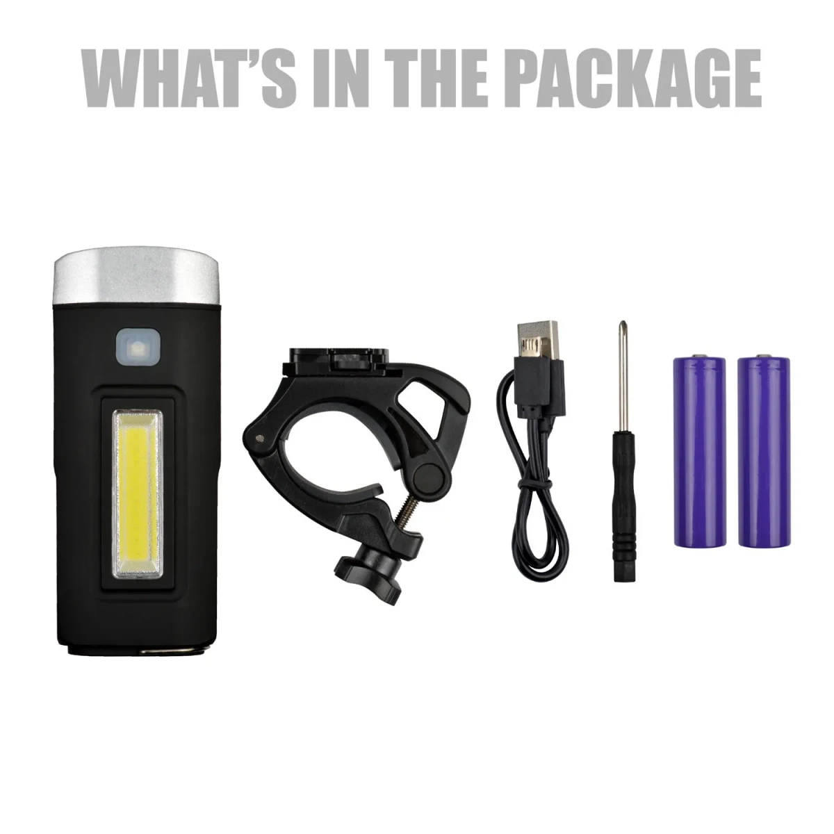 | Время работы: | Время зарядки: 5 часов с зарядным устройством с USB-выходом 1 А Режимы и время работы: 2 светодиода: 100% (3,5 ч) - 50% (7 ч) - мигание (7 ч) | Особенности: | Нажмите кнопку для включения и смены режимов Двойное нажатие кнопки для переключения между постоянным и импульсным режимами Нажмите и удерживайте кнопку в течение 1 секунды = ВЫКЛ Основные материалы: Пластик + алюминиевая оправа |