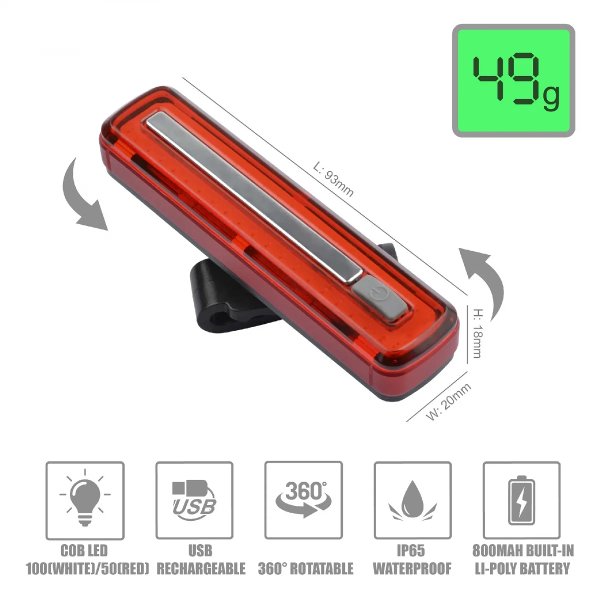 Задний велосипедный фонарь EBL-2271A имеет красную линзу и черное основание. Он обладает яркостью 50 люмен, использует 44 светодиодных ламп SMD и имеет встроенный аккумулятор емкостью 800 мАч. 2 час зарядки обеспечивает до 3.5 часов непрерывной работы.