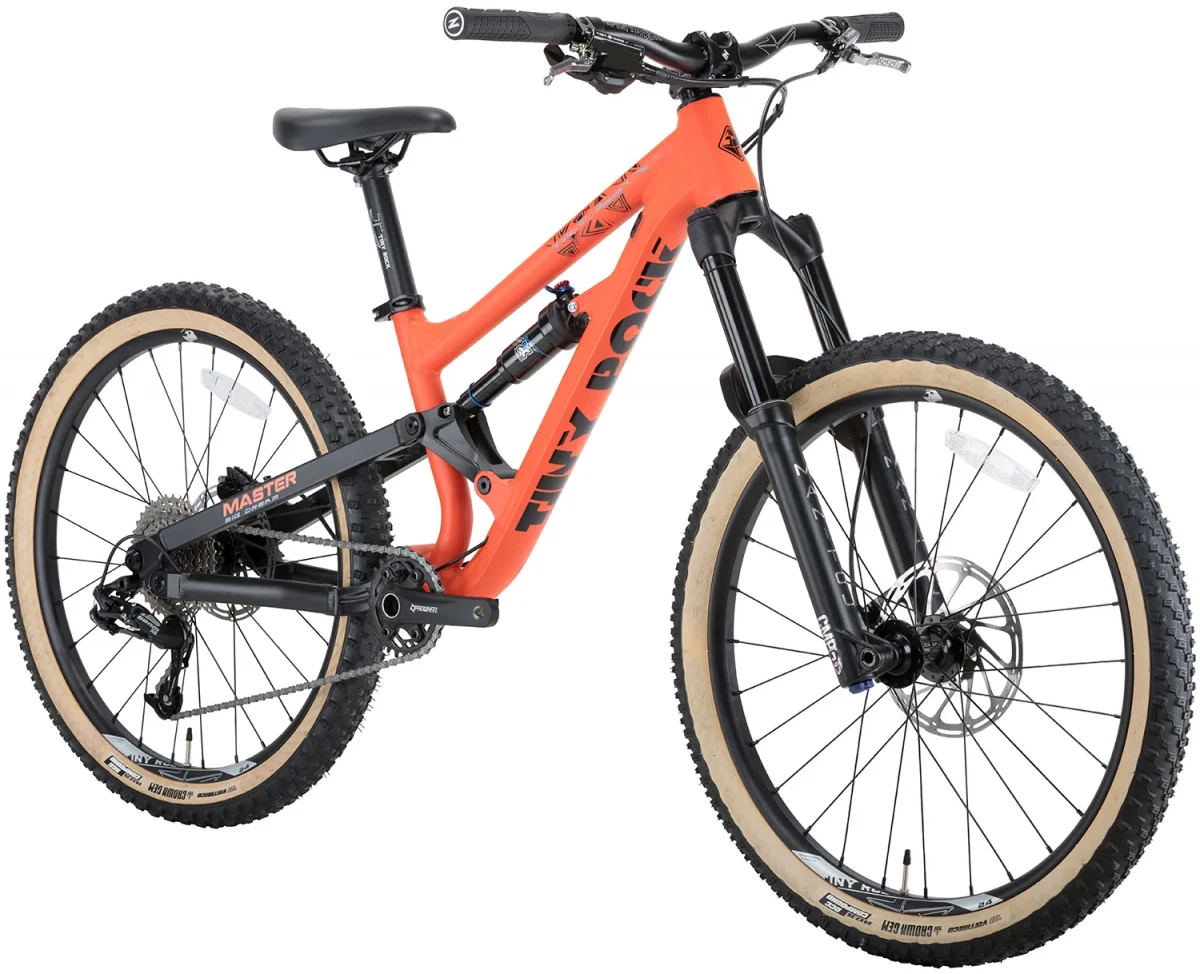 Старший двухподвес Tiny Rock в алюминиевом исполнении — для подростков, которые катают серьёзно, но без переплаты за карбон. Tiny Rock MASTER 24" построен на алюминиевой раме и сохраняет ту же геометрию и подвеску, что и карбоновая MASTER S. Воздушная вилка Manitou Air Fork и задний амортизатор X-Fusion O2 Pro RL выдают по 140 мм хода — этого достаточно для полноценных трейлов и каменистых сбросов.