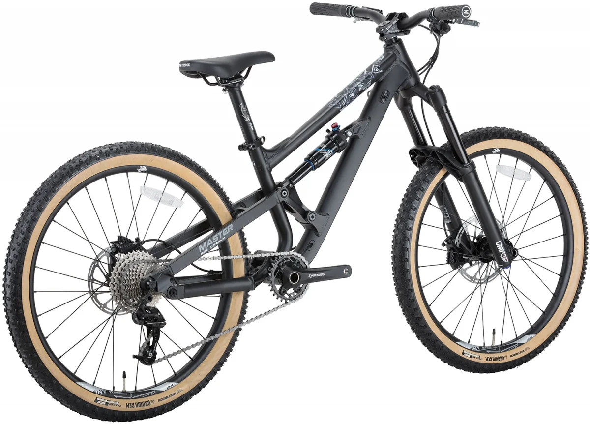 Старший двухподвес Tiny Rock в алюминиевом исполнении — для подростков, которые катают серьёзно, но без переплаты за карбон. Tiny Rock MASTER 24" построен на алюминиевой раме и сохраняет ту же геометрию и подвеску, что и карбоновая MASTER S. Воздушная вилка Manitou Air Fork и задний амортизатор X-Fusion O2 Pro RL выдают по 140 мм хода — этого достаточно для полноценных трейлов и каменистых сбросов.