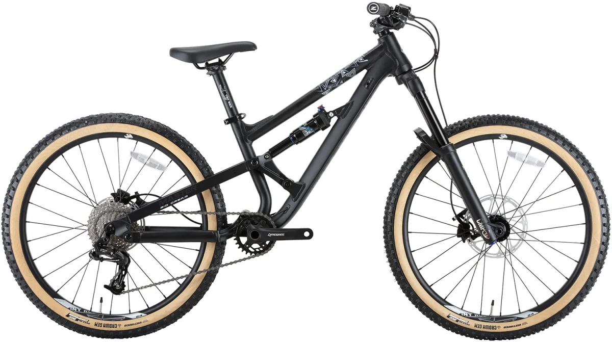 Трансмиссия SRAM 1×10 с кассетой 11–36T перекрывает любой рельеф одной манеткой, без лишних движений. Четырёхпоршневые гидравлические тормоза Tektro держат на скоростных спусках, а покрышки Vee Tire Crown Gem 24×2.25" со скинволлом цепляются за грунт и не теряют скорости на асфальтовых перегонах. Общий вес — 12,8 кг, для двухподвеса с ходом 140 мм это отличный показатель. Подходит райдерам ростом 120–155 см, обычно 7–12 лет.