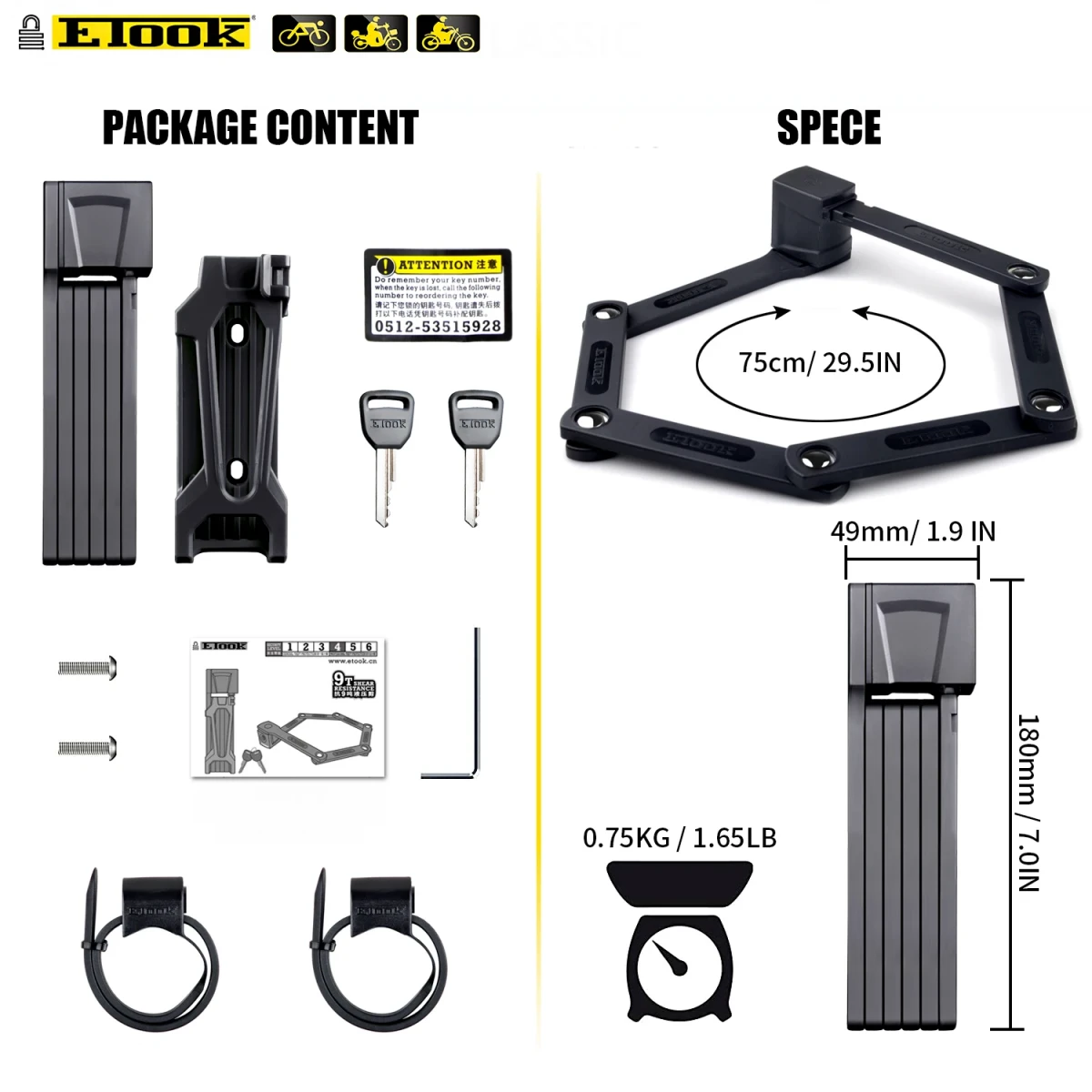 Замок складной с ключом ET 480 Folding-Lock 4x20x130мм.