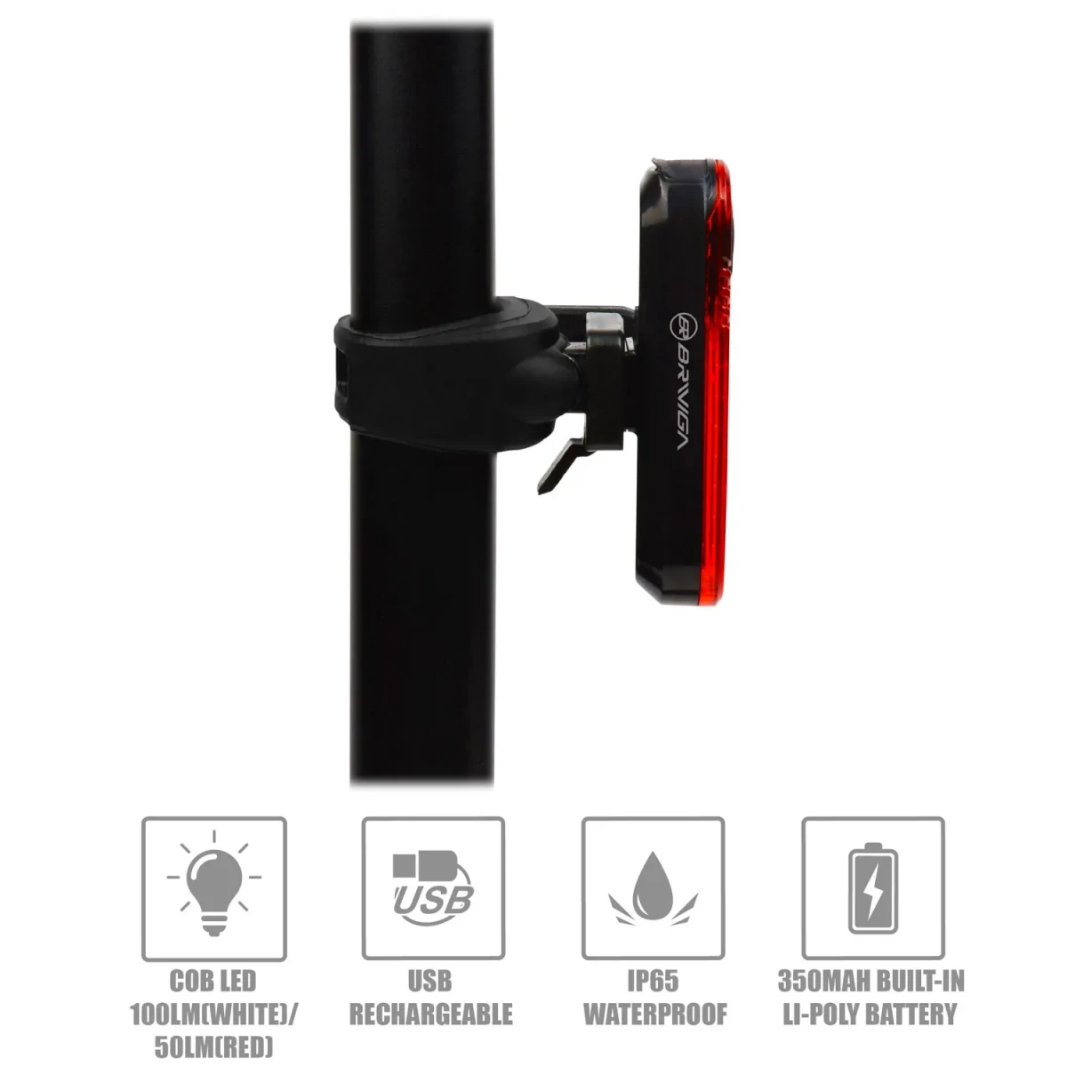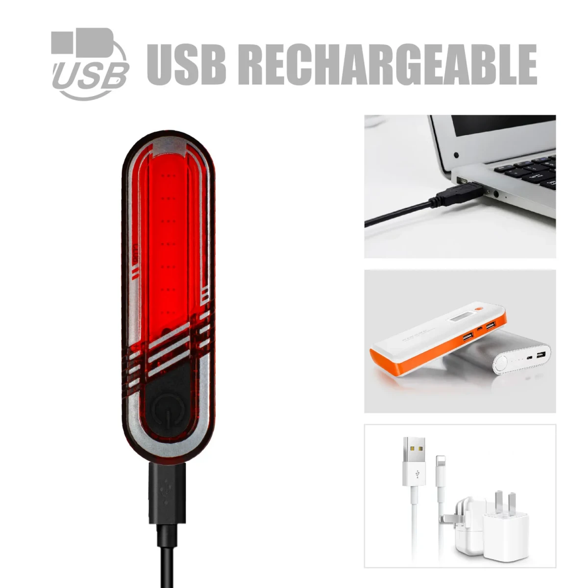 Задний велосипедный фонарь EBL-040R имеет красную линзу и черное основание. Он обладает яркостью 50 люмен, использует COB-светодиоды и имеет встроенный аккумулятор емкостью 350 мАч. 2 час зарядки обеспечивает до 0.5-1 часов непрерывной работы.