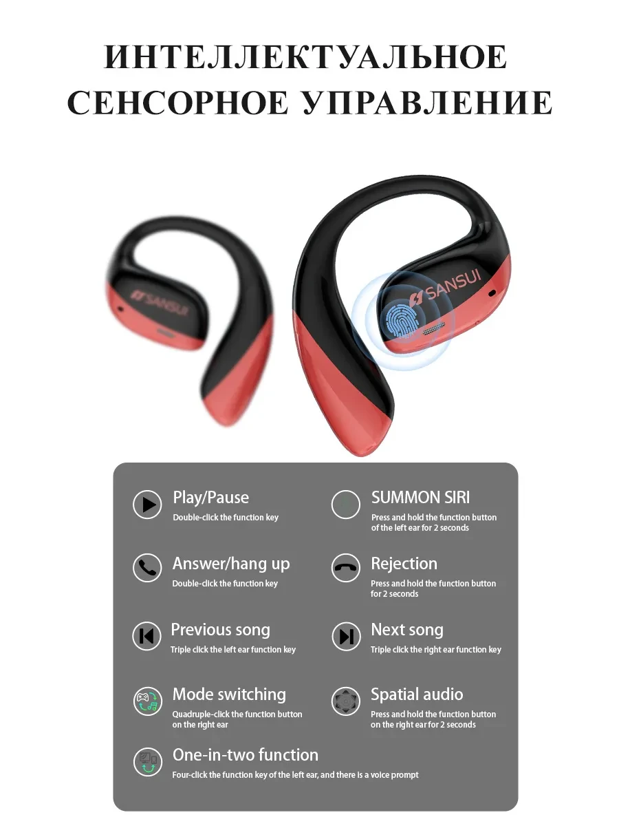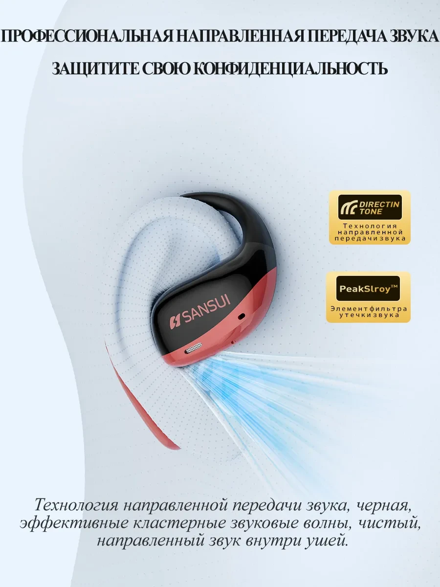 Беспроводные наушники открытого типа с Bluetooth, идеально подходящие для занятий спортом, W19, Красный/Черный