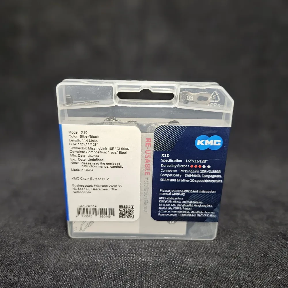 Цепь велосипедная KMC X10 Silver-Black, 10 скоростей, 116 звеньев, с замочком MissingLink 10R/CL559R в комплекте Параметры: