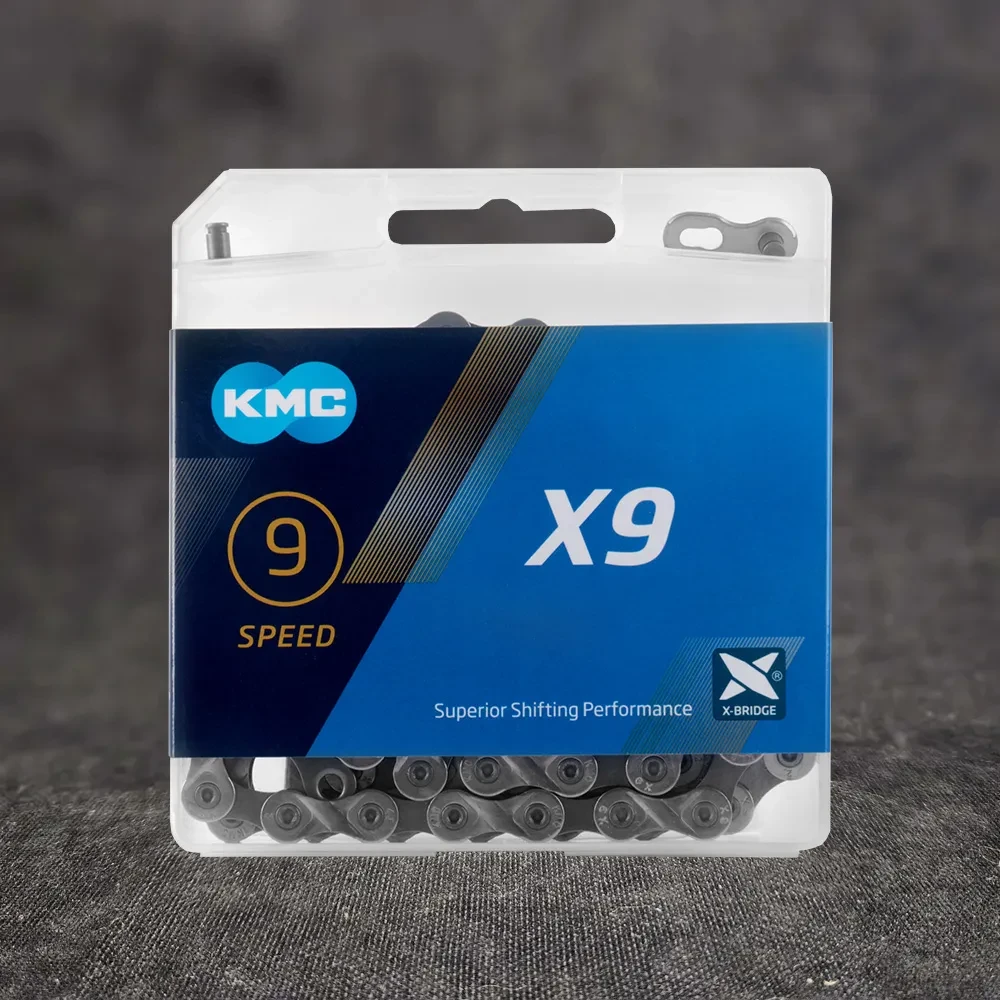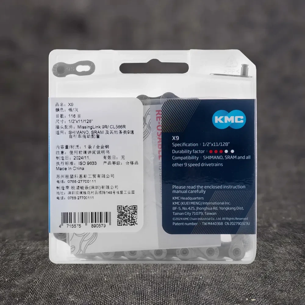 Цепь велосипедная KMC X9 Silver-Gray, 9 скоростей, 116 звеньев, с замком MissingLink 9R/CL566R в комплекте Параметры: