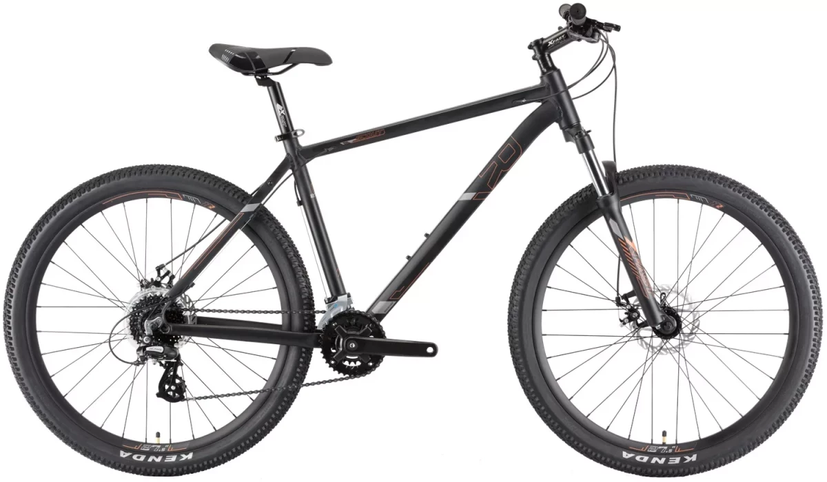 | Покрышки колёс: | KENDA K1153, 27,5*2,35”, полностью черная шина, 30TPI, белая этикетка «KENDA» | Передний тормоз: | Суппорт дискового тормоза, ротор Ø160 мм, LOGAN |