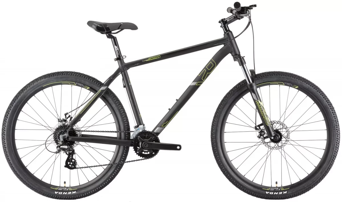 | Покрышки колёс: | KENDA K1153, 27,5*2,35”, полностью черная шина, 30TPI, белая этикетка «KENDA» | Передний тормоз: | Суппорт дискового тормоза, ротор Ø160 мм, LOGAN |