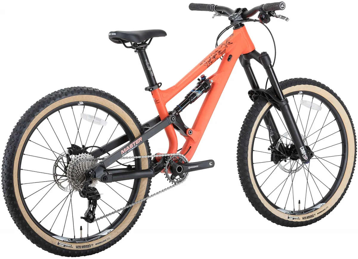Старший двухподвес Tiny Rock в алюминиевом исполнении — для подростков, которые катают серьёзно, но без переплаты за карбон. Tiny Rock MASTER 24" построен на алюминиевой раме и сохраняет ту же геометрию и подвеску, что и карбоновая MASTER S. Воздушная вилка Manitou Air Fork и задний амортизатор X-Fusion O2 Pro RL выдают по 140 мм хода — этого достаточно для полноценных трейлов и каменистых сбросов.