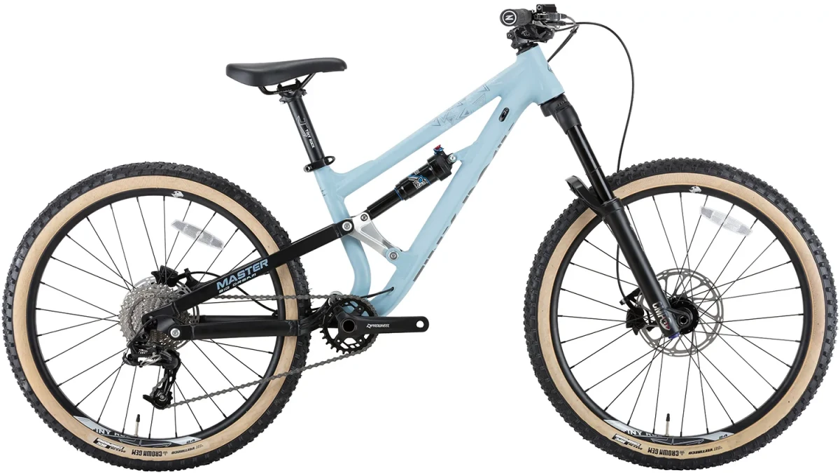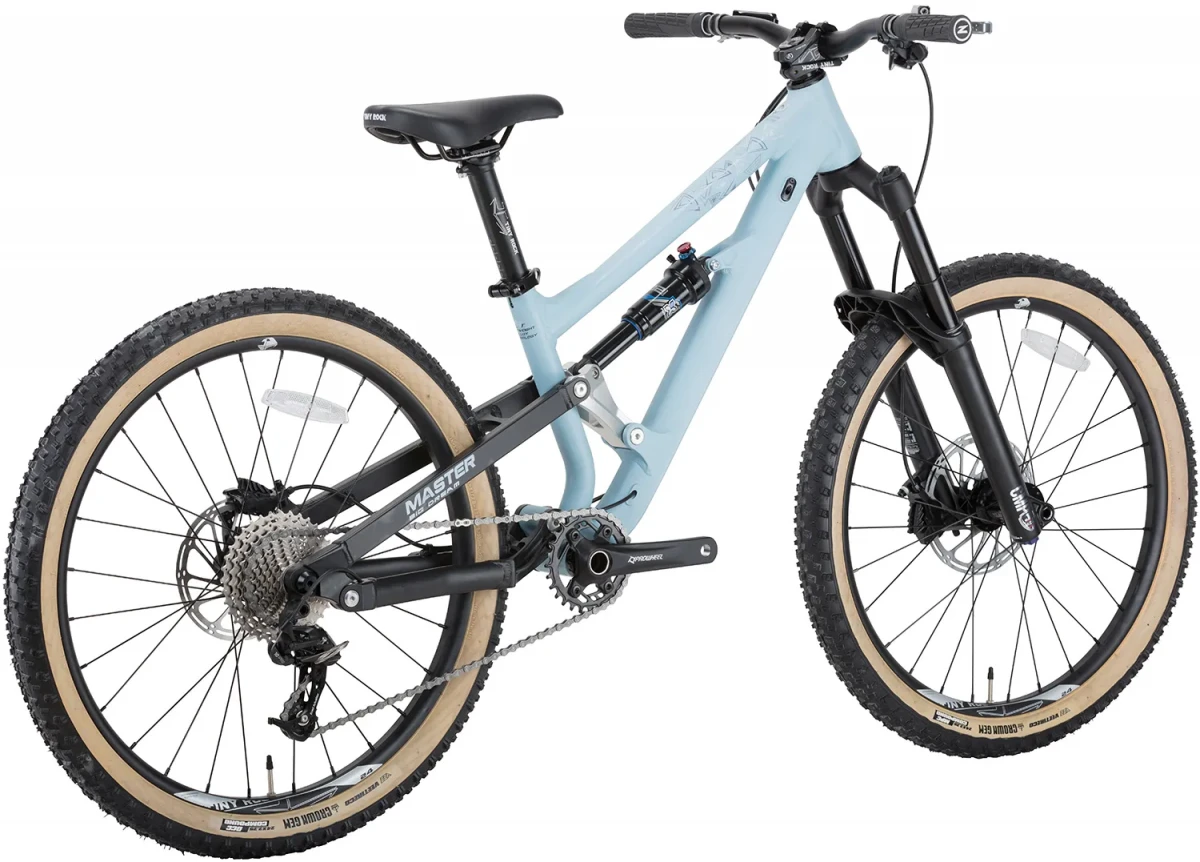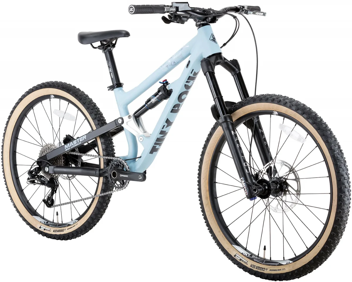 Старший двухподвес Tiny Rock в алюминиевом исполнении — для подростков, которые катают серьёзно, но без переплаты за карбон. Tiny Rock MASTER 24" построен на алюминиевой раме и сохраняет ту же геометрию и подвеску, что и карбоновая MASTER S. Воздушная вилка Manitou Air Fork и задний амортизатор X-Fusion O2 Pro RL выдают по 140 мм хода — этого достаточно для полноценных трейлов и каменистых сбросов.